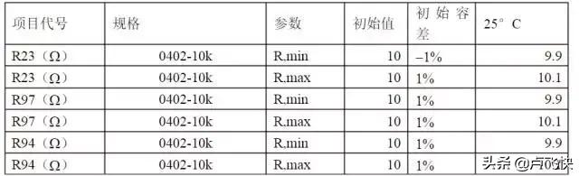 運放輸出低后,電阻R98(51k)就并在R97上,將基準拉低,新的基準電壓Vref1=Vref*(R98//R97)/(R23+R98//R97)=2.28V達到2.44V時,R99的阻值R99=Vref*R94/Vref1-R94=11.9kR99達到10.49k時,溫度按下表計算