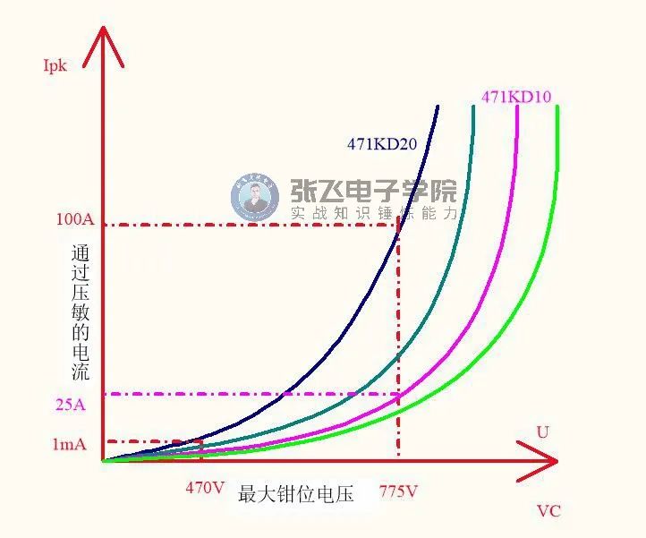 從上圖看471KD10與471KD20的數據來比較,我們可以看出允許的大交流與直流電壓都相同,但是大的鉗位電壓上面我們可以看出KD10的與KD20通過的電流時25A與100A,這說明我們在同一個電路上,打同一等級的雷擊浪涌時,KD10的鉗位電壓要比KD20的高。