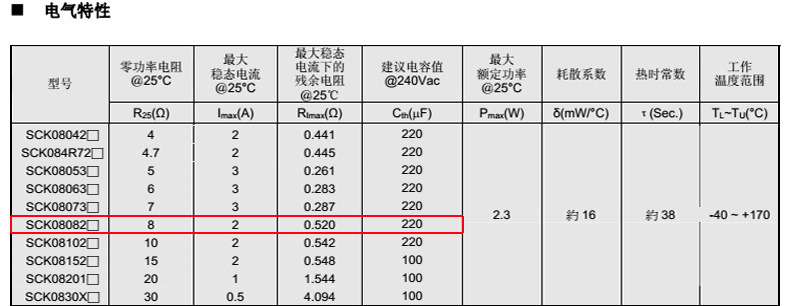熱敏電阻型號: