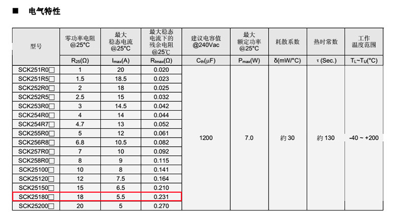 熱敏電阻: VT 熱敏電阻型號: SCK25180MSY 熱敏電阻片徑: Φ25mm 零功率電阻@25℃: 18Ω 工作溫度范圍: -40℃±200℃ 儲存溫度范圍: -40℃±85℃