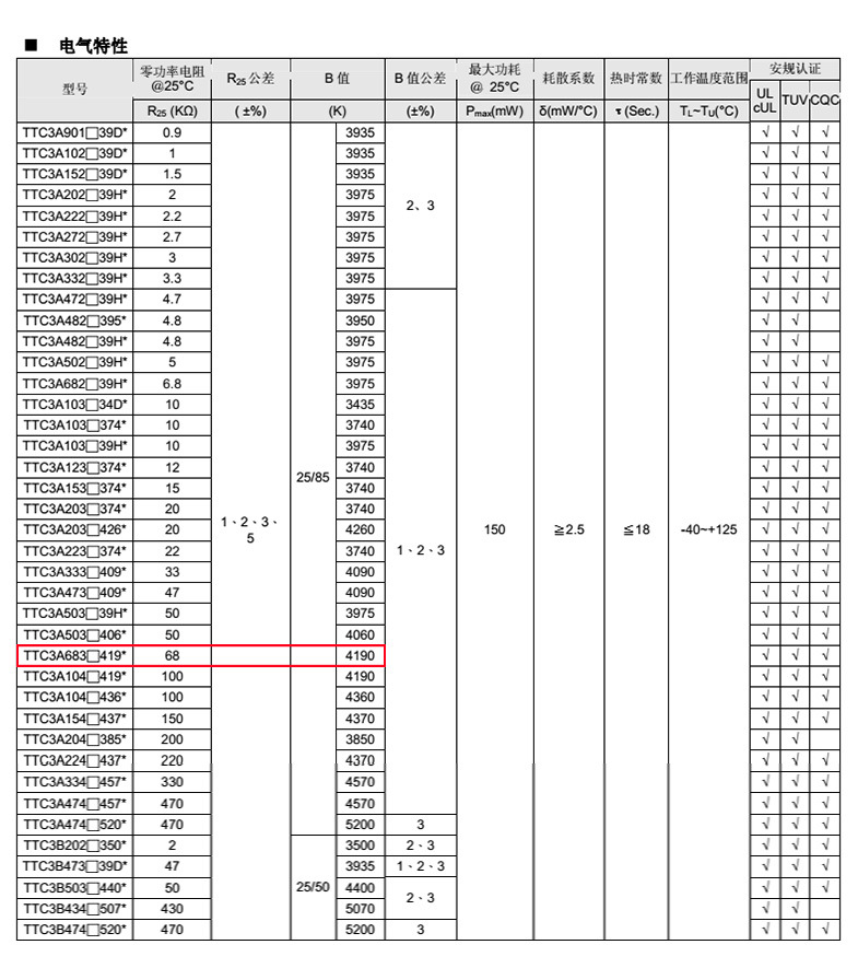 熱敏電阻型號: