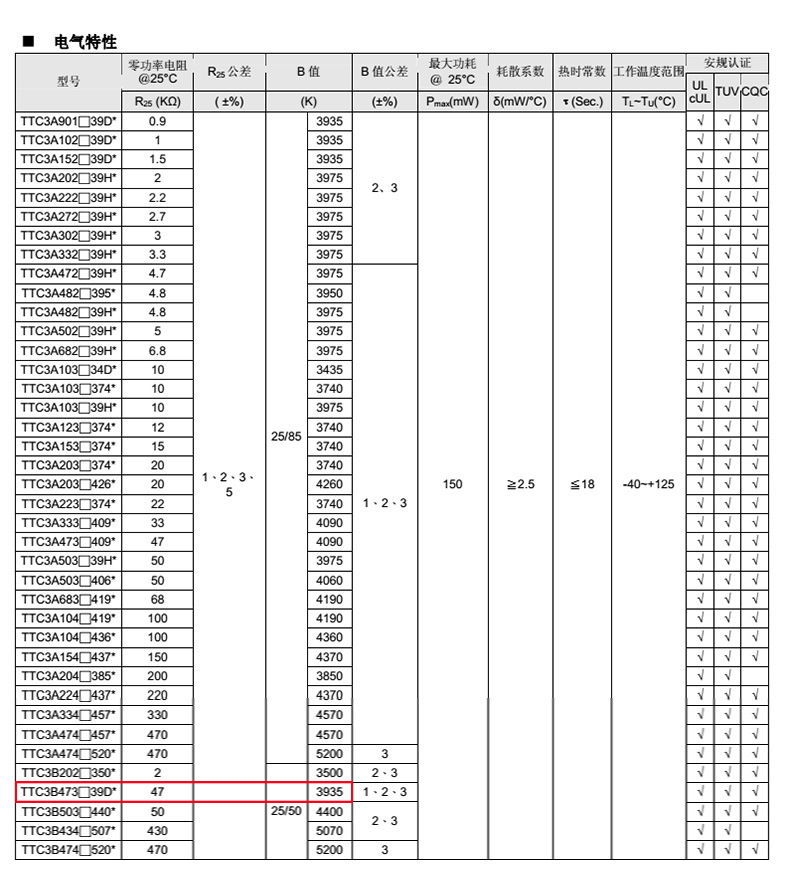 熱敏電阻型號(hào)::TTC3B473F39DEY |