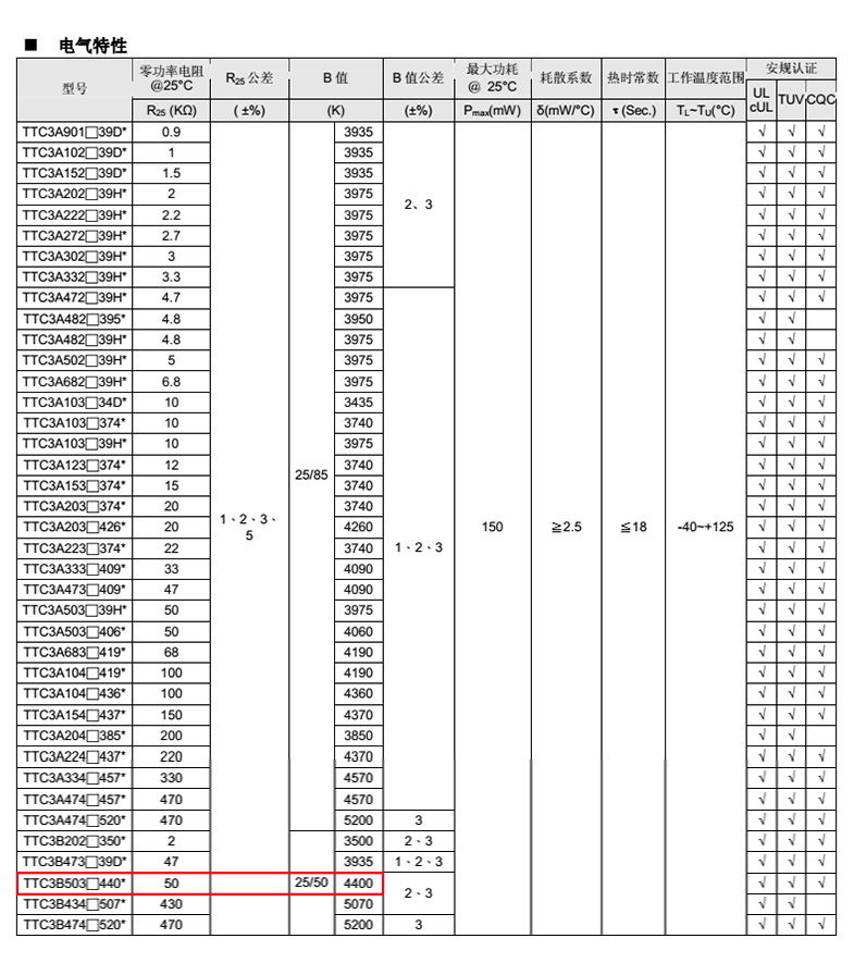熱敏電阻型號: