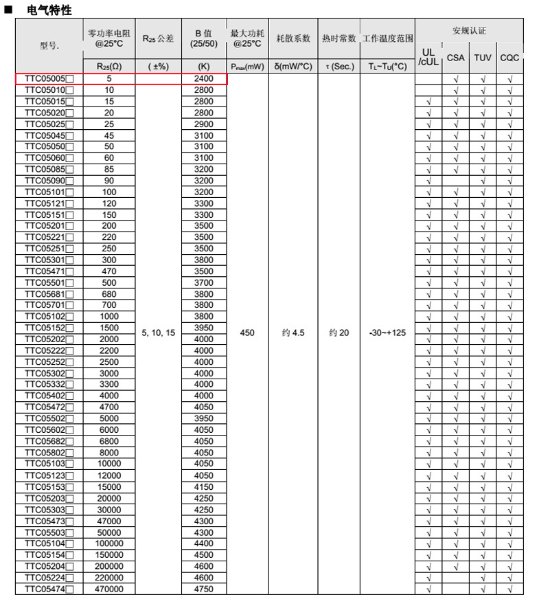 熱敏電阻認證齊全