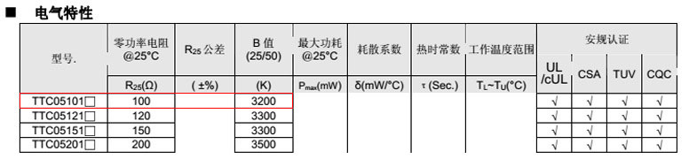 熱敏電阻型號: