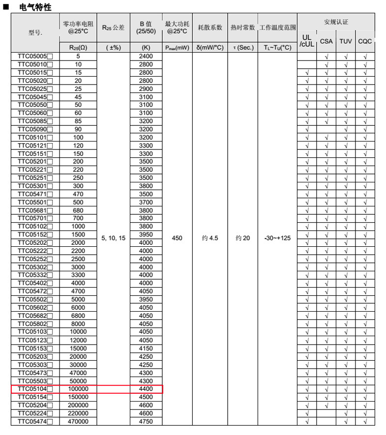 熱敏電阻型號:
