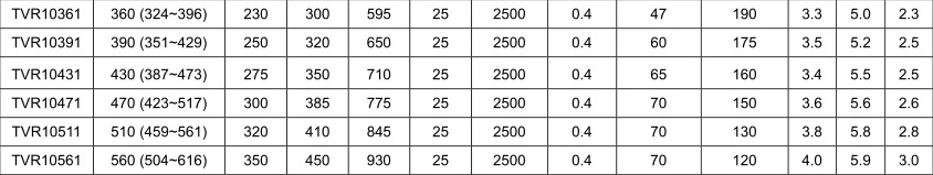 壓敏電阻片徑: Φ10mm 標(biāo)稱壓敏電壓(@1mADC): 560V(504~616)