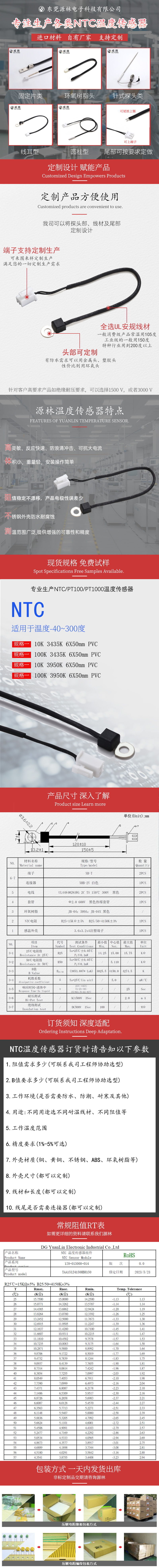 NTC熱敏電阻10K溫度傳感器 耐高溫BMS汽...