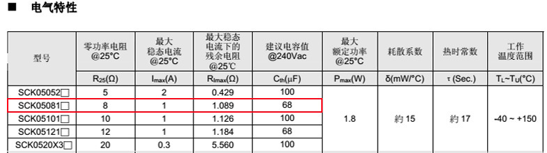 熱敏電阻型號: