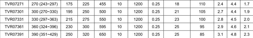 壓敏電阻片徑: Φ7mm 標(biāo)稱壓敏電壓(@1mADC): 270V(243~297)